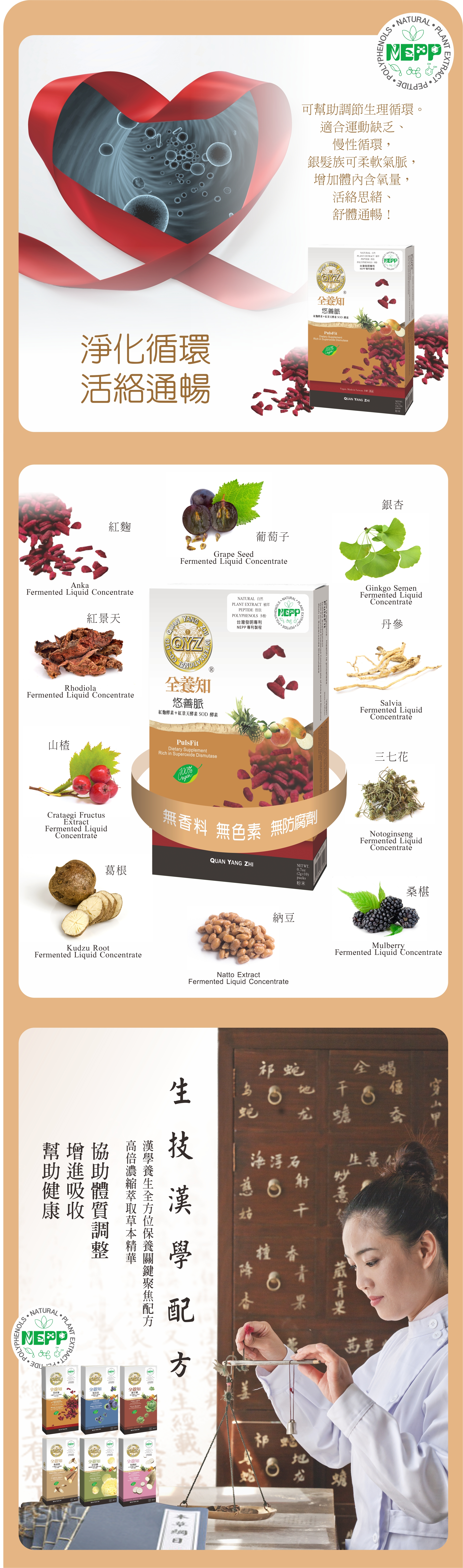 獨家調配有氧循環八大配方,可幫助調節生理機能