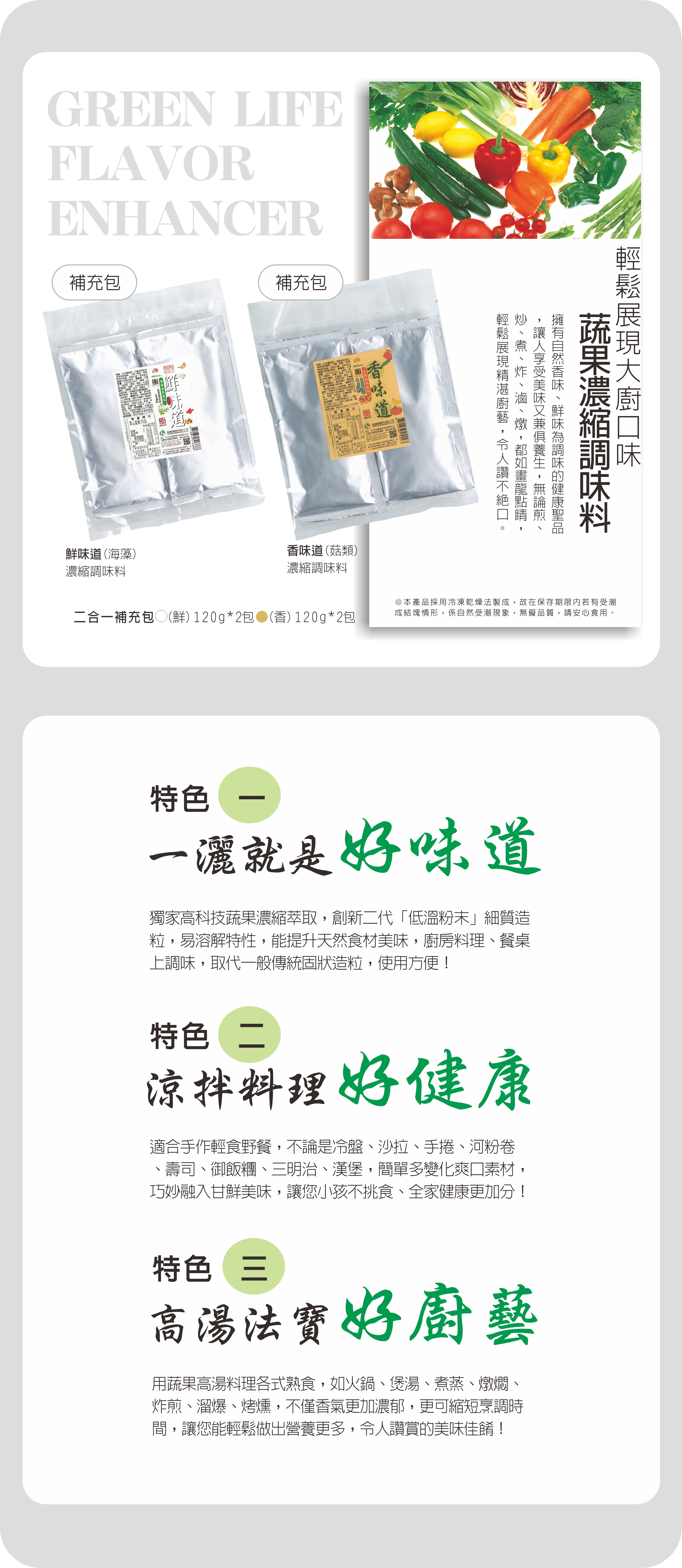 以多種蔬果乾燥濃縮,加重香菇香甘美味高倍精華,只需一點點,輕鬆展現好廚藝,使用方便,是家家必備養生料理好幫手。